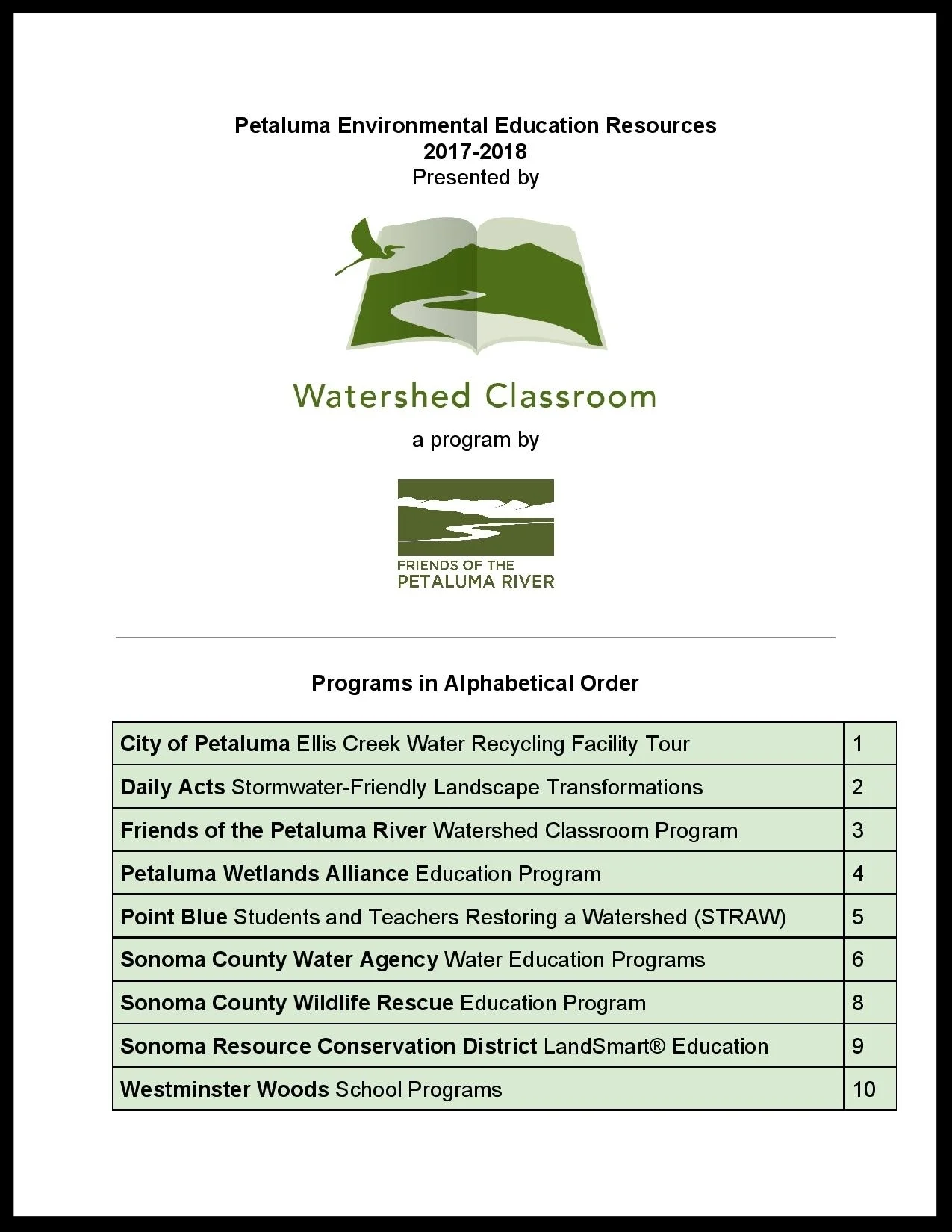 Watershed Classroom supports the implementation of exceptionally engaging curriculum about the Petaluma River and Watershed to educate youth in Petaluma about their place in our environment, how their decisions and actions affect their environment and inspire youth to conserve and celebrate the Petaluma Watershed.